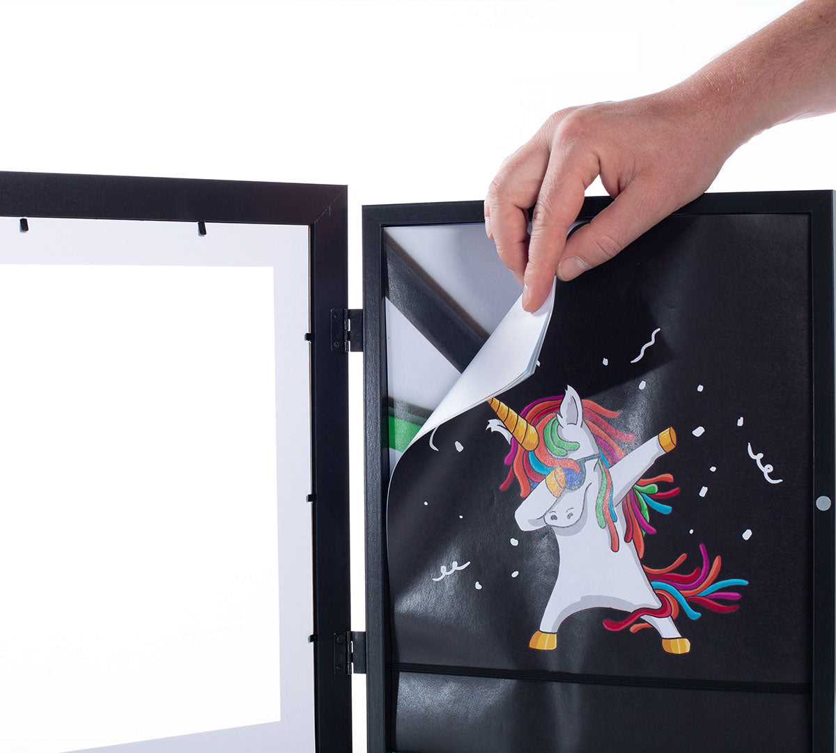 - Easy to use – This frame is equipped with a magnetic front panel door for easy yet secure access to the inside of the frame. Simply place your loved ones’ art underneath the provided elastic straps for a secure hold and their art is ready for display.