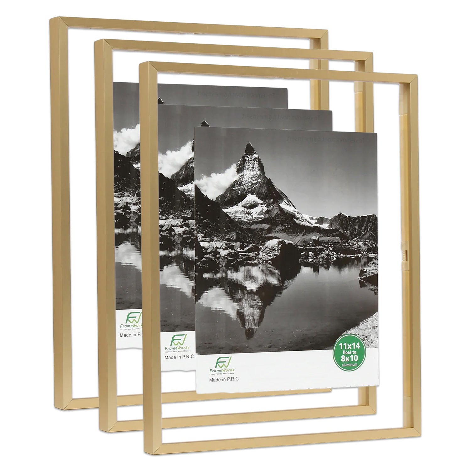 11" x 14" Deluxe Brass Gold Aluminum Contemporary Floating Picture Frame with Tempered Glass