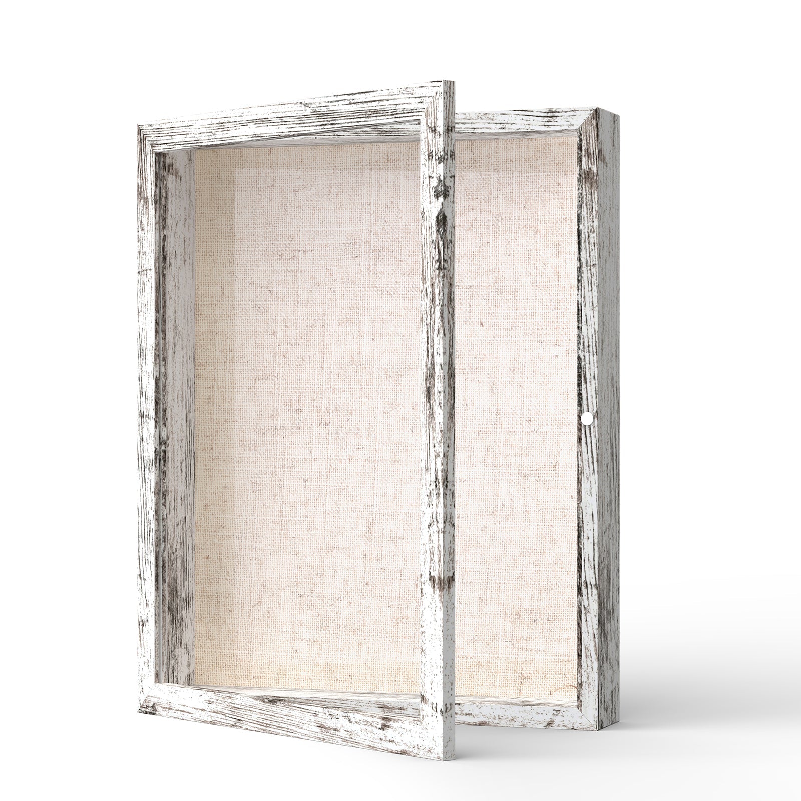 11" x 14" White Woodgrain MDF Wood Linen Backboard Shadow Box Frame