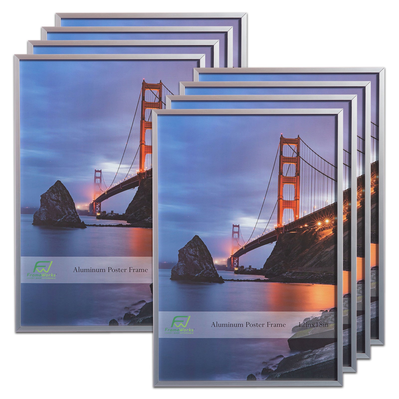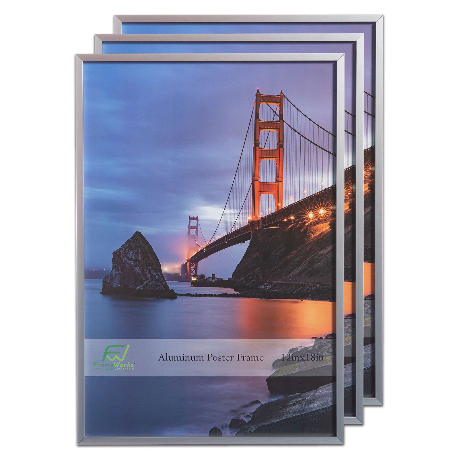 A beautiful poster deserves a beautiful frame and these FrameWorks brushed aluminum poster frames are what your posters deserve. With premium quality, a modern look, and an affordable price, make your posters pop with attention and conversation with the 12” x 18” FrameWorks Aluminum Picture Frame. The brushed metal finish will give your pictures a distinct appearance that complements a variety of living and working spaces. The shatterproof plexiglass provides a clear look at the frame’s contents while giving you peace-of-mind with safety. With vertical and horizontal hangers, you have full reign to customise the placement of your photos. This frame is also EPA and TSCA certified meaning you can rest easy knowing that this product is environmentally friendly and all packaging material is recyclable. No assembly required.
