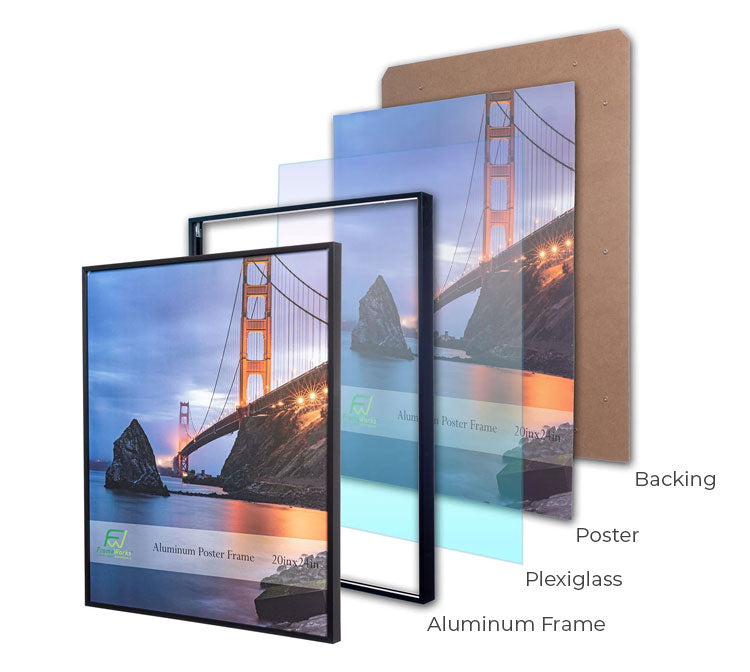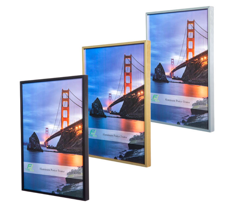 A beautiful poster deserves a beautiful frame and these FrameWorks brushed aluminum poster frames are what your posters deserve. With premium quality, a modern look, and an affordable price, make your posters pop with attention and conversation with the 16” x 20” FrameWorks Silver Aluminum Picture Frame. The brushed metal finish will give your pictures a distinct appearance that complements a variety of living and working spaces. The shatterproof plexiglass provides a clear look at the frame’s contents while giving you peace-of-mind with safety. With vertical and horizontal hangers, you have full reign to customise the placement of your photos. This frame is also EPA and TSCA certified meaning you can rest easy knowing that this product is environmentally friendly and all packaging material is recyclable. No assembly required.