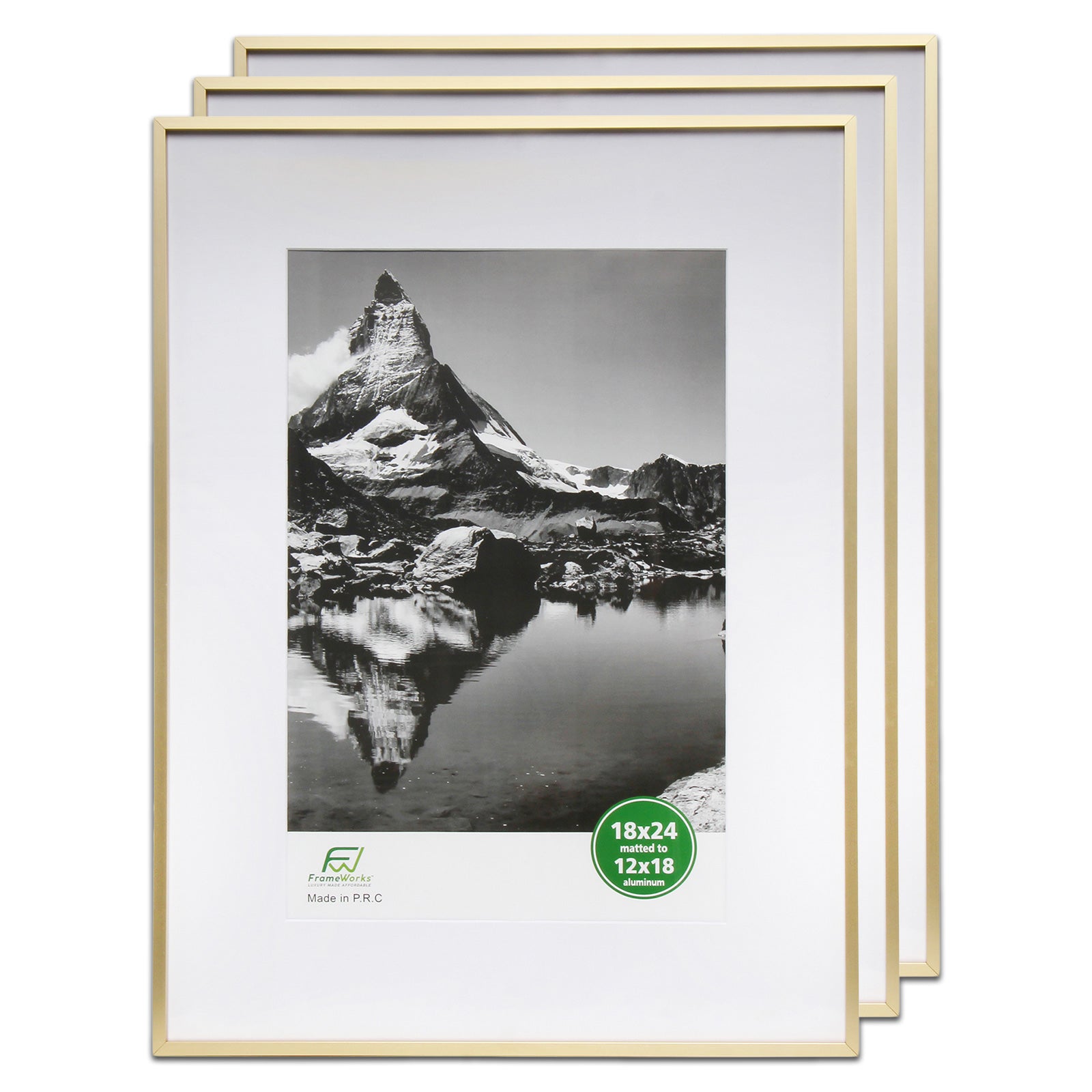 18" x 24" Deluxe Brass Gold Aluminum Contemporary Picture Frame, 12" x 18" Matted