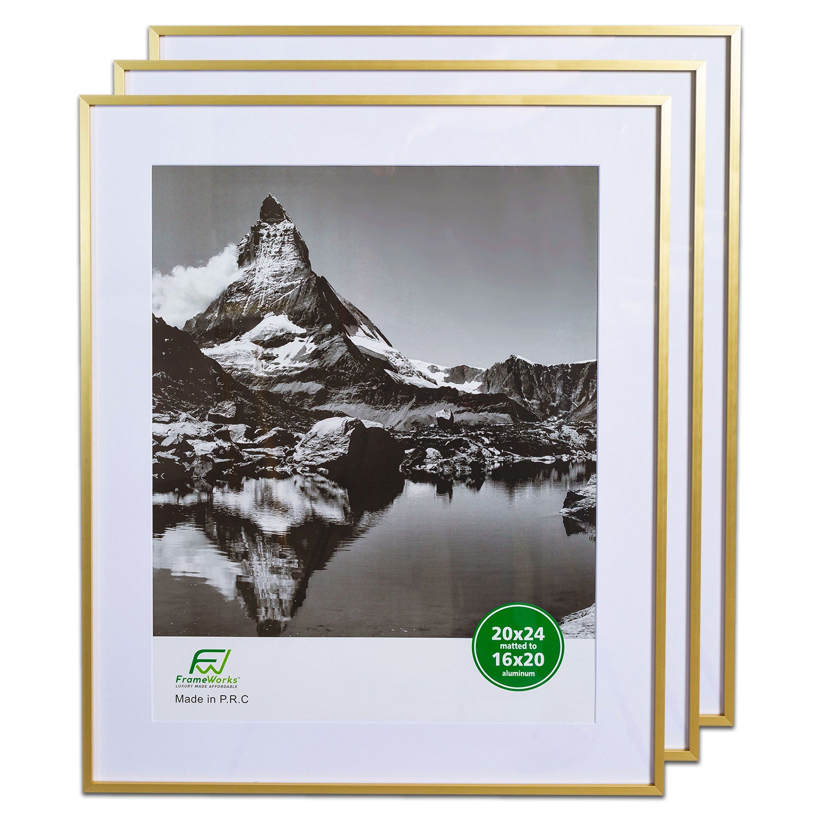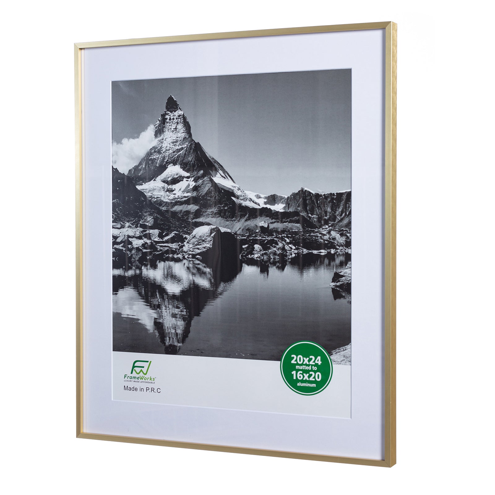 20" x 24" Deluxe Brass Gold Aluminum Contemporary Picture Frame, 16" x 20" Matted