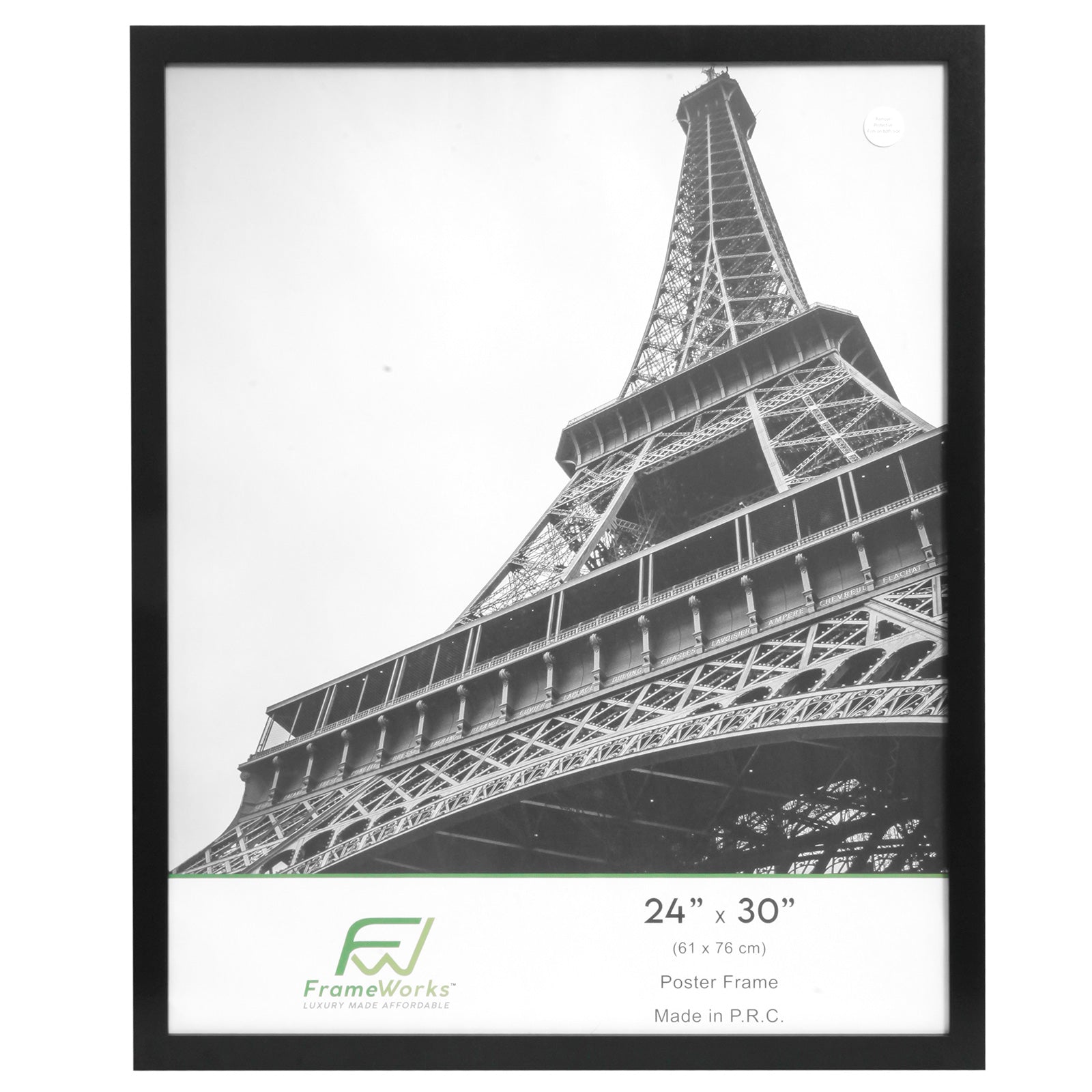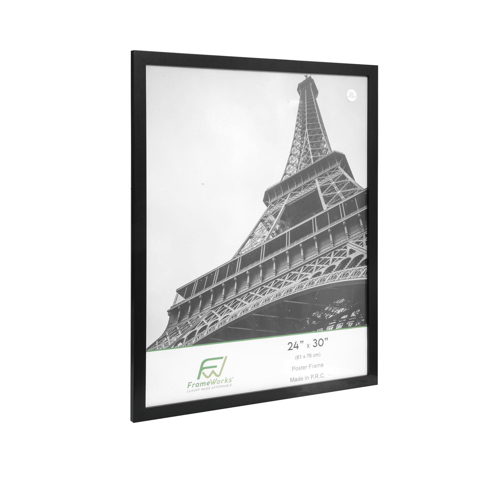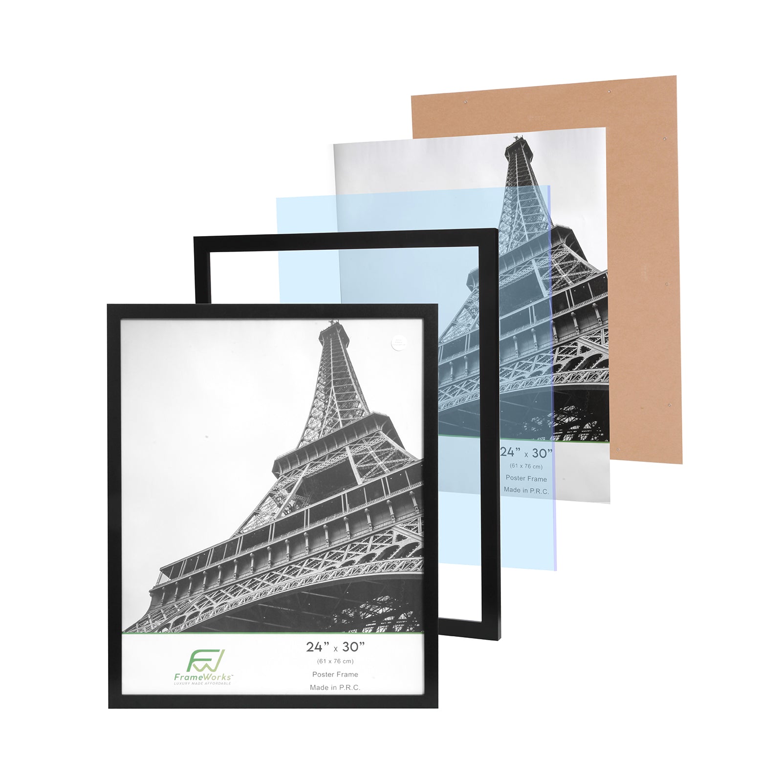 A poster without a frame is just asking to be damaged; the FrameWorks Multi-Pack Black Wooden Poster Frame will keep your favorite poster or photos safe. The sleek classic design is sure to make your posters stand out in a variety of locations whether it is standing on its own or hanging on a wall. Our custom packaging only uses recyclable materials and is EPA certified to meet standards that protect the environment. The plastic corner braces keep the frames safe with zero mess which makes unboxing simple.