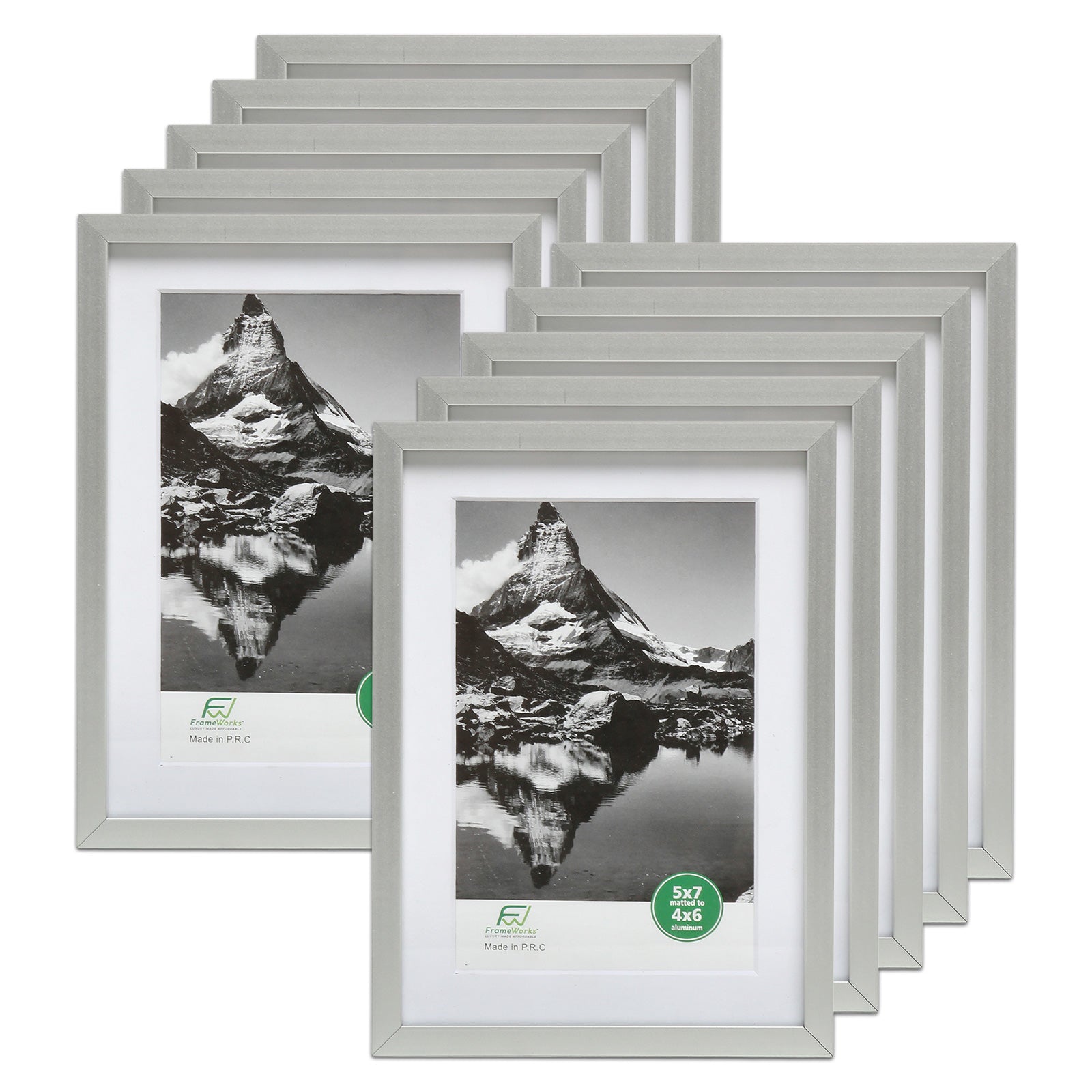 Make your photos pop with the contemporary look of the FrameWorks Deluxe Silver Aluminum Picture Frame. The brushed metal finish will give your pictures a distinct appearance that complements a variety of living and working spaces. With vertical and horizontal hangers, you have full reign to customise the placement of your photos. This frame is also EPA and TSCA certified meaning you can rest easy knowing that this product is environmentally friendly and all packaging material is recyclable.