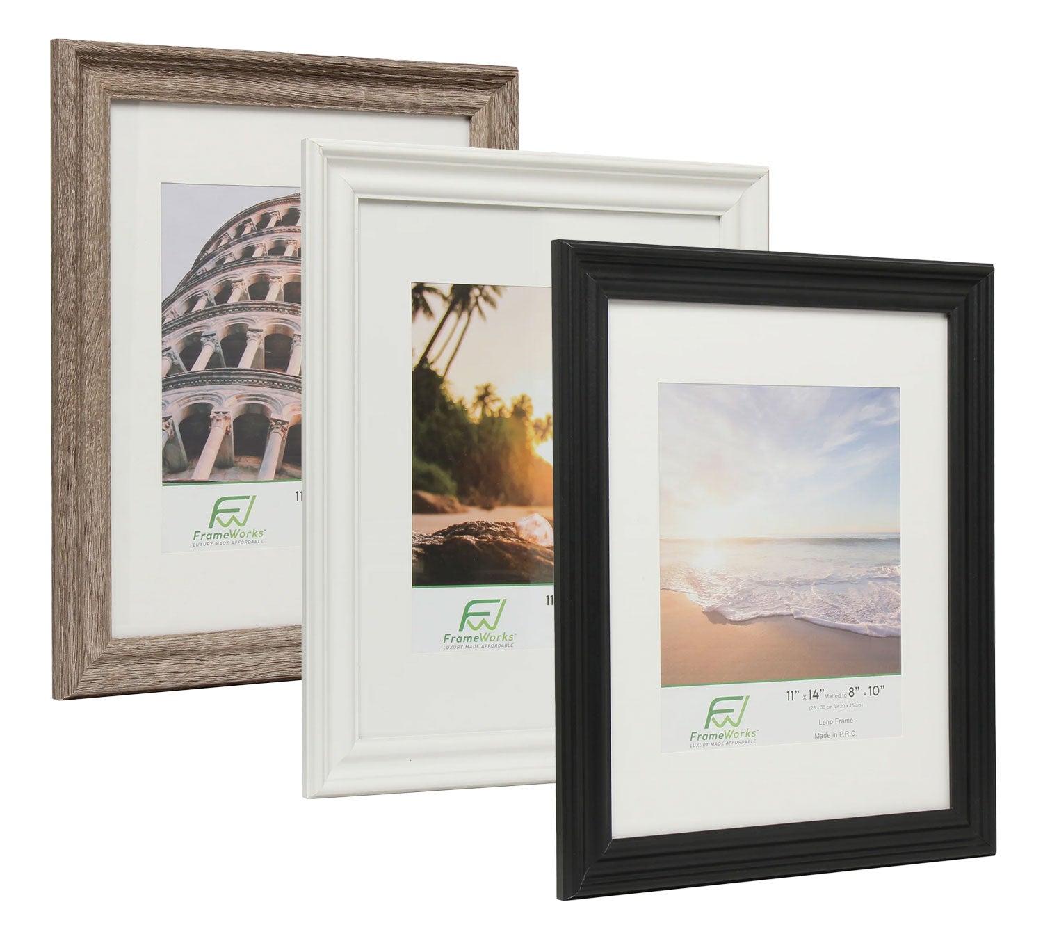 11" x 14" Rustic MDF Wood Multi-Pack Picture Frames with Molded Edges, 8" x 10" Matted