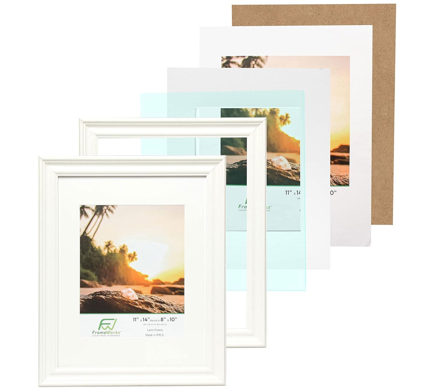 11" x 14" White MDF Wood Multi-Pack Picture Frames with Molded Edges, 8" x 10" Matted