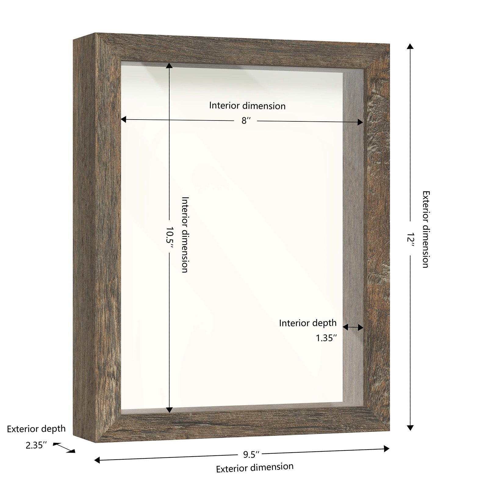 8 1/2" x 11" Brown Driftwood Finish MDF Wood Shadow Box Frame