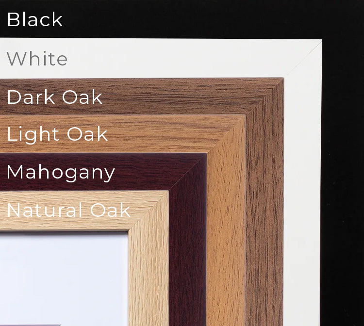 Choose from black, white, mahogany, dark oak, natural oak, and light oak.