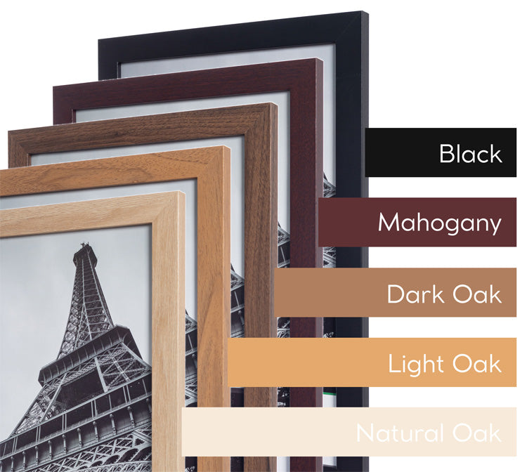 Choose from black, mahogany, dark oak, natural oak, and light oak.
